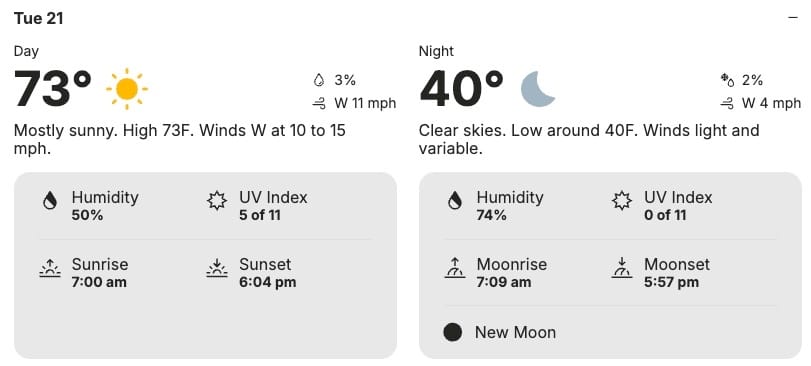 🌤️ Columbia’s Tuesday Weather - Mostly sunny w/ high of 73, low of 40