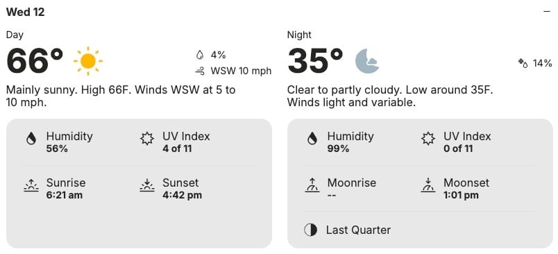 ☀️ Columbia’s Wednesday Weather - Sunny w/ high of 66, low of 35
