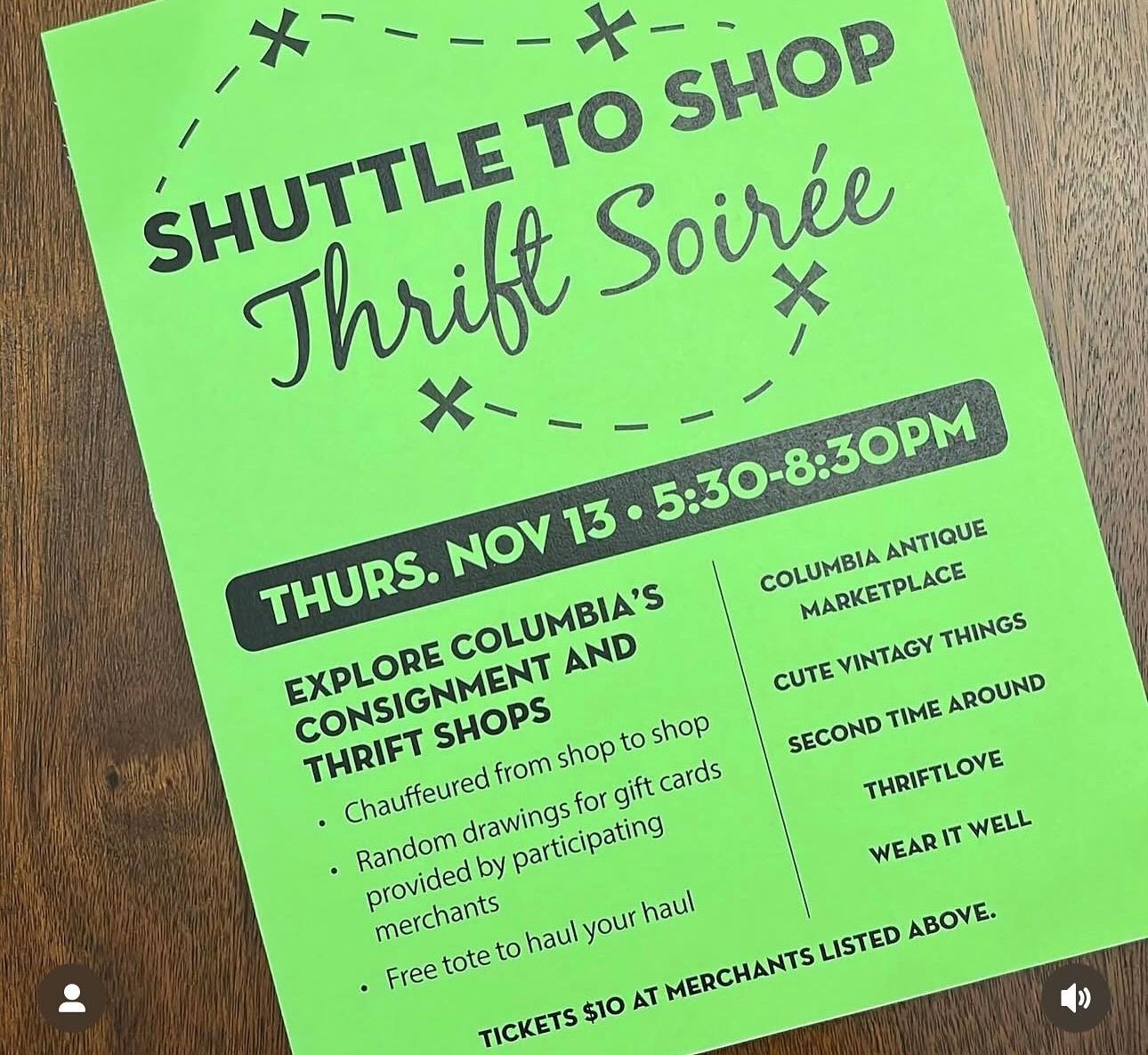 Mark your calendars for an exclusive evening on Thursday, November 13, from 5:30 PM to 8:30 PM, as all hipsters and thrift enthusiasts are invited to the Shuttle to Shop Thrift Soiree event. This is your chance to explore the hidden gems of Columbia’s vibrant consignment and resale shops—all while being whisked away in style!