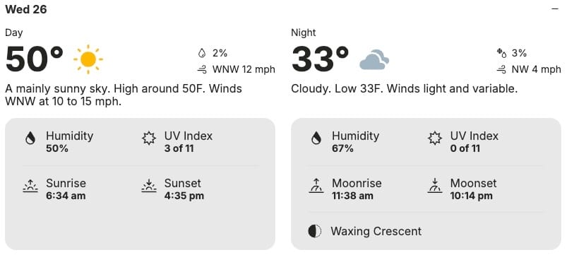 ☀️ Columbia’s Weather - Sunny w/ high of 50, low of 33