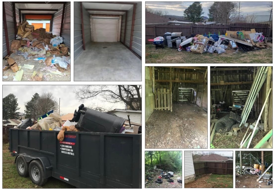 Clean Sweep does garage cleanouts, attic cleanups, basement jobs, furniture haul-offs, hot tub removal, swimming pool teardowns, shed demolition, and commercial work for companies like Dollar General, Kroger, and Ross. They've recently added skid steer services for things like overgrown property cleanup, driveway repair, and pole barn pad preparation.