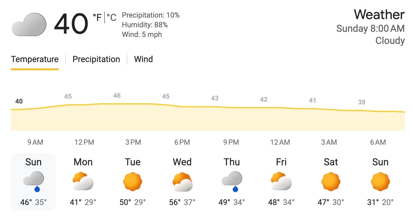 ☁️ Columbia’s Weather - Cloudy w/ high of 40, low of 35