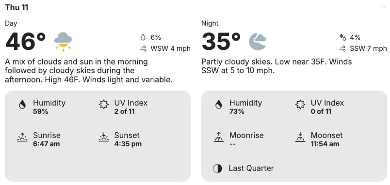 ⛅️ Columbia’s Thursday Weather - Partly cloudy w/ high of 46, low of 35
