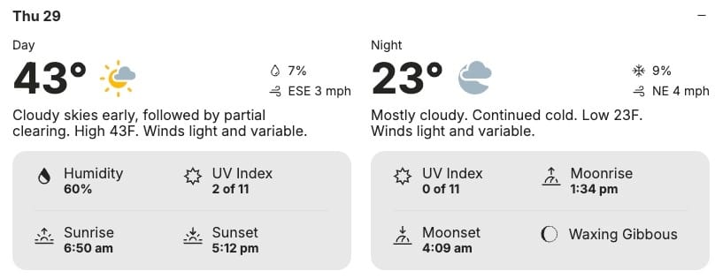 ⛅️ Columbia’s Thursday Weather - Mostly cloudy w/ high of 43, low of 23 👉 Stay tuned to Weather Down in Mule Town for your local weather updates!