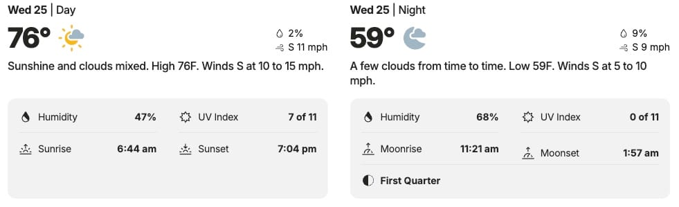 🌤 Columbia’s Wednesday Weather - Partly cloudy w/ high of 76, low of 59