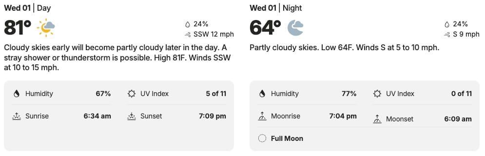 ⛅️ Columbia’s Wednesday Weather - Partly cloudy w/ high of 81, low of 64