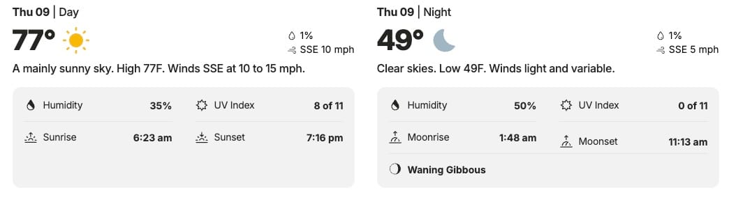 ☀️ Columbia’s Thursday Weather - Sunshine w/ high of 77, low of 49