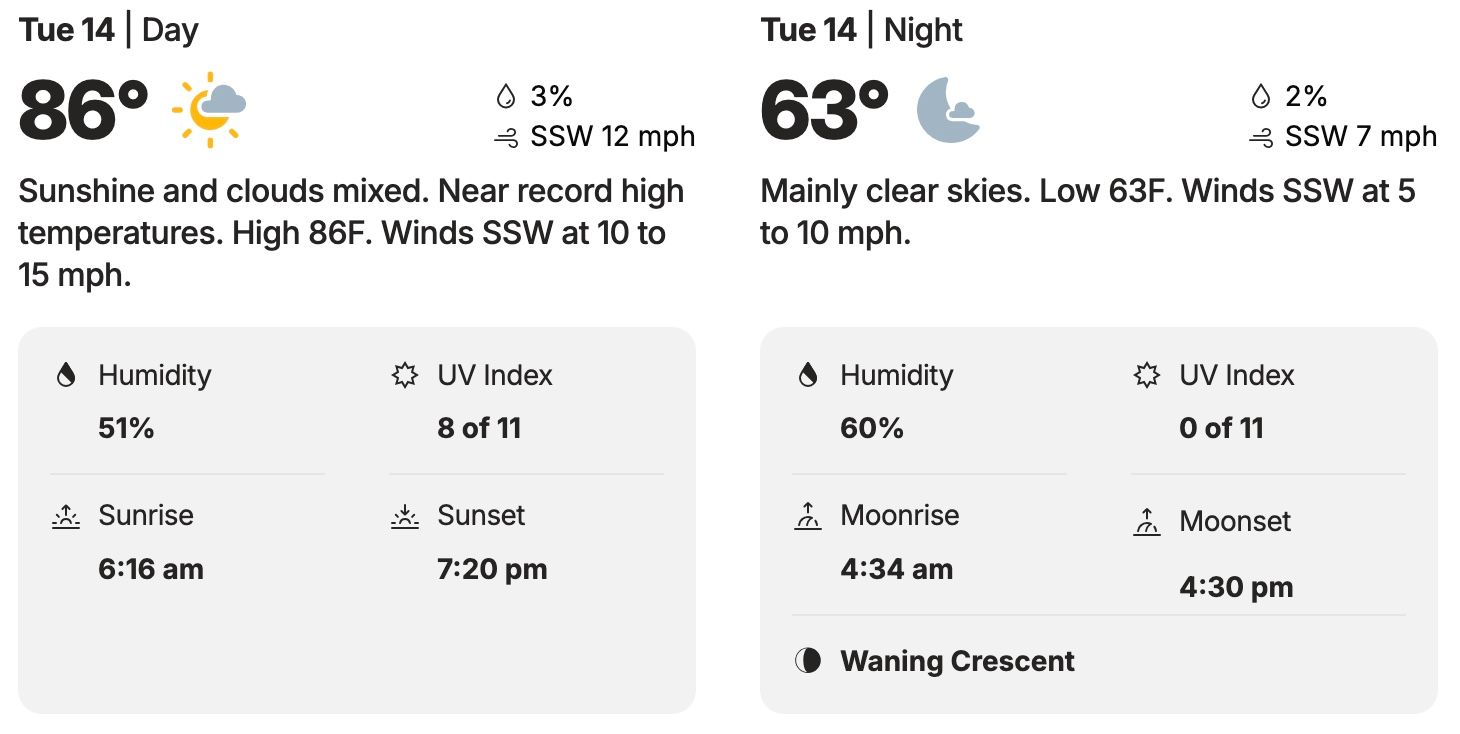 🌤️ Columbia’s Tuesday Weather - Sunshine & Clouds Mixed w/ high of 86, low of 63