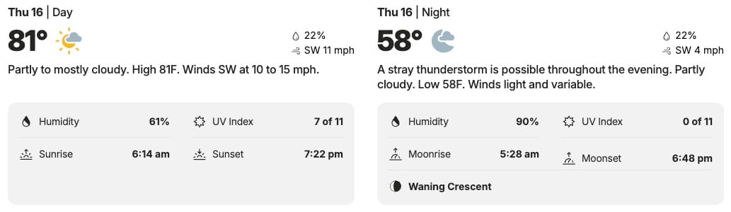🌤️ Columbia’s Thursday Weather - Partly/Mostly cloudy w/ high of 81, low of 58