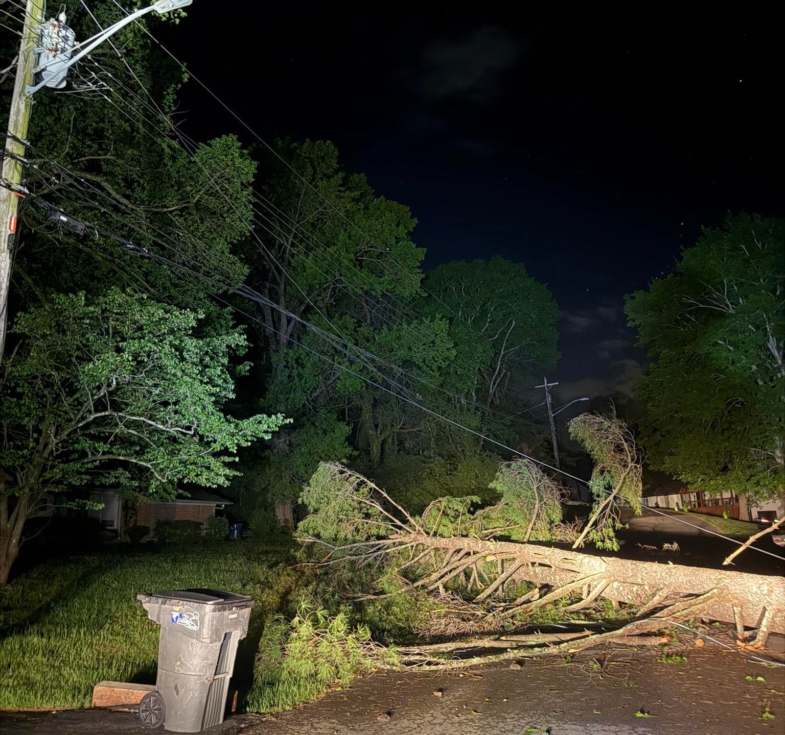 9:15 p.m. UPDATE | A large tree fell across a line in Sunnyside. We expect most of that area to be restored shortly, while about 50 customers on Hemingway Ct. and one end of Sunnyside Dr. will remain out for a couple hours or more while we repair the damage.