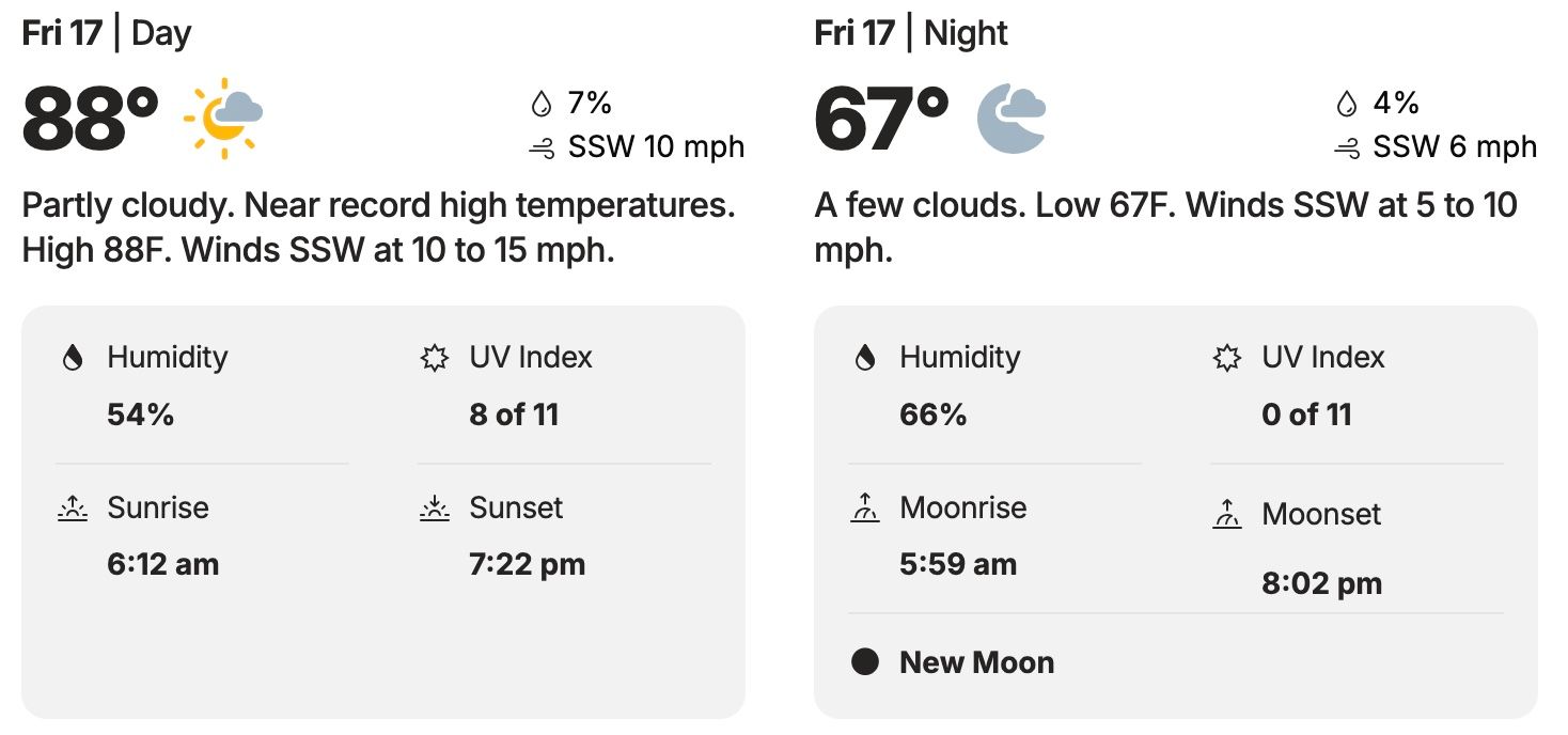 🌤️ Columbia’s Friday Weather - Partly cloudy w/ high of 88, low of 67